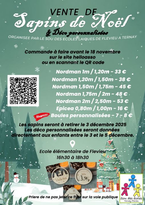 Vous trouverez dans le cahier de liaison les bons de commande des sapins. La date limite de commande est le 18/11/2025.